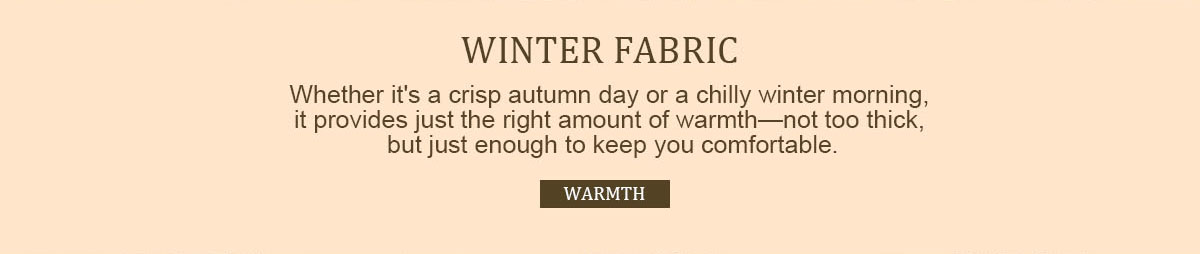 - Winter Fabric: Crafted from a soft, breathable cotton blend, it provides just the right amount of warmth, whether it's a crisp fall day or a chilly winter morning—not too thick, but just enough to keep you comfortable.