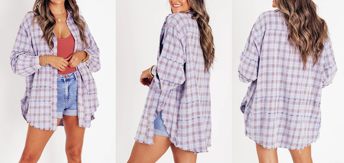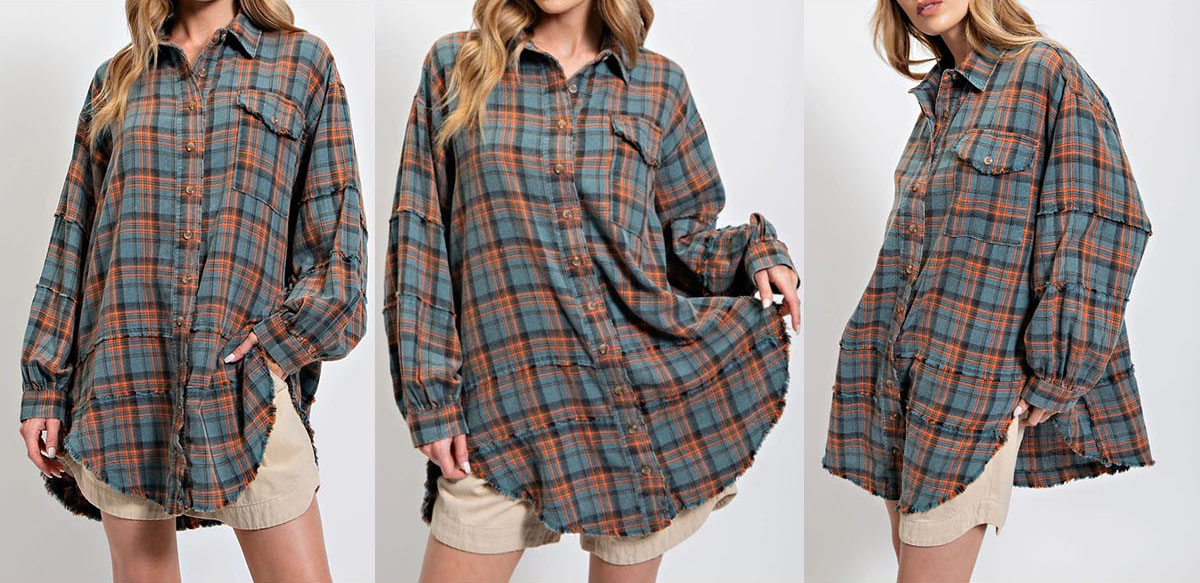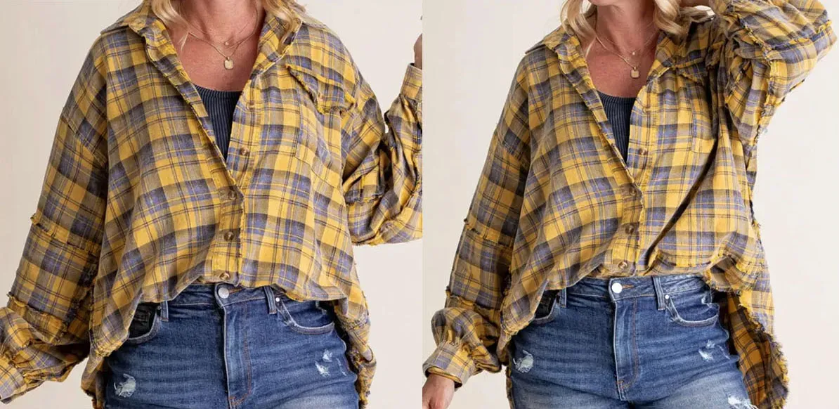 - Stylish Balloon Sleeves: Puff sleeves add a playful, feminine touch, while raw-edged details at the cuffs and hem create a subtle, effortless cool, making it stand out from the ordinary plaid shirt.